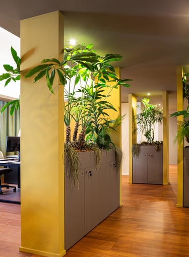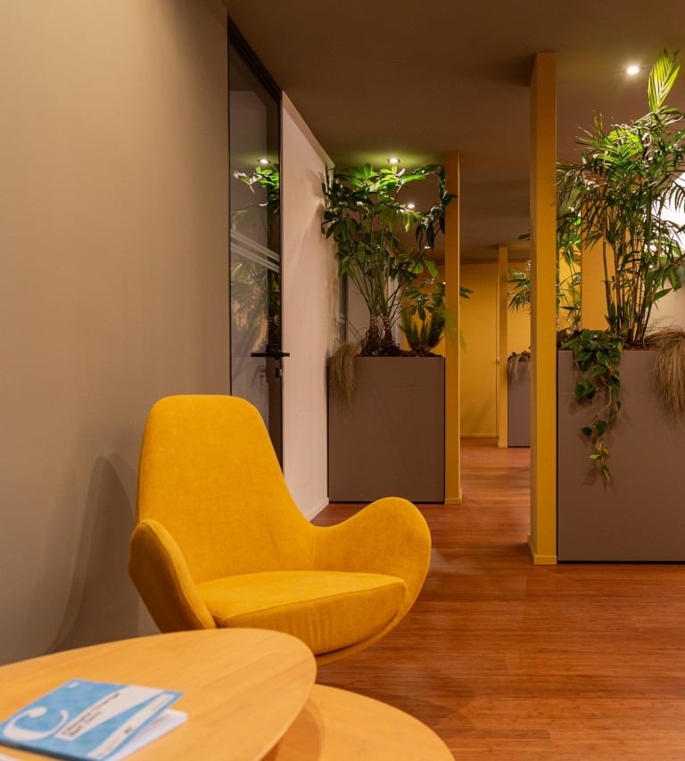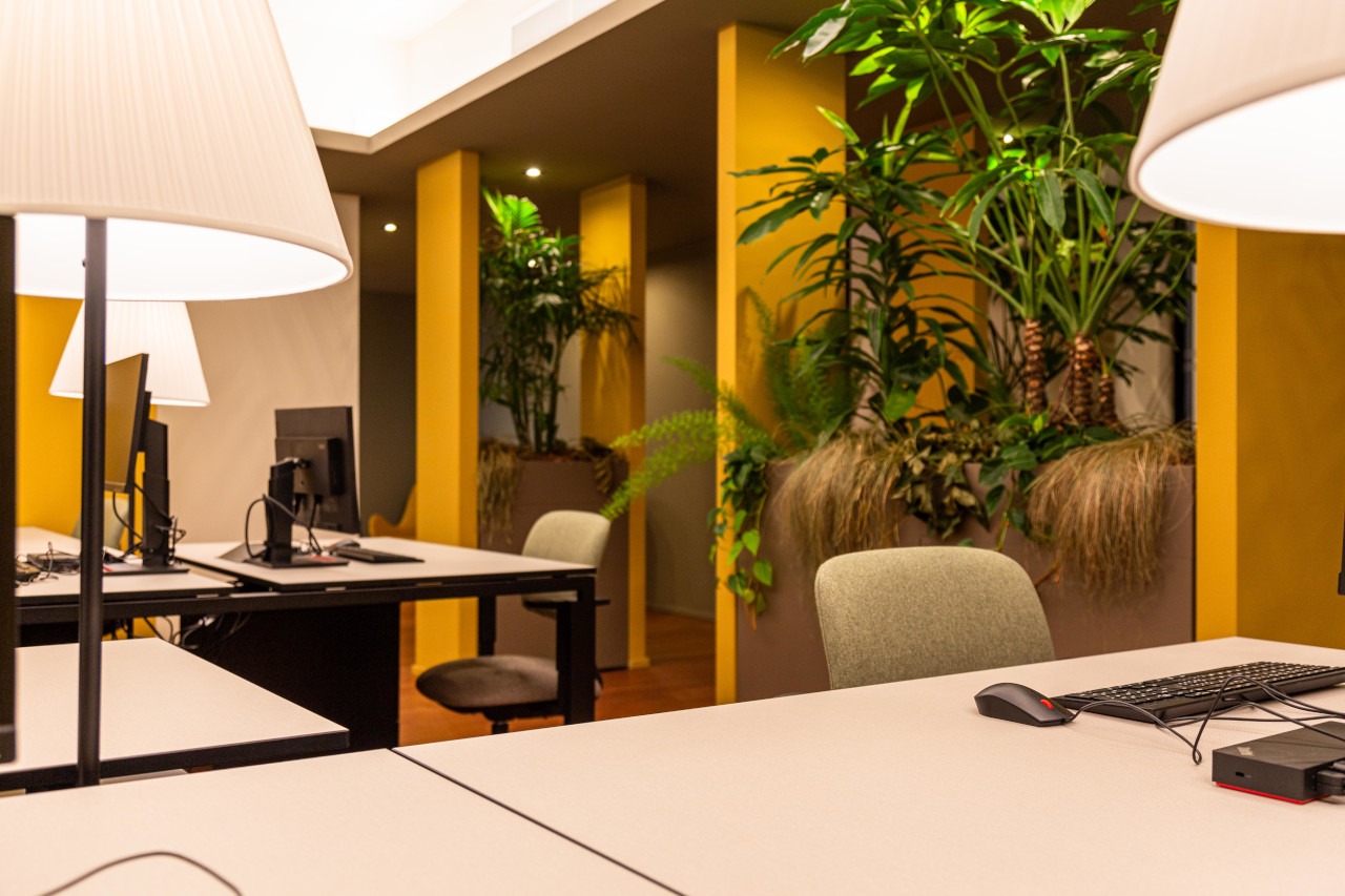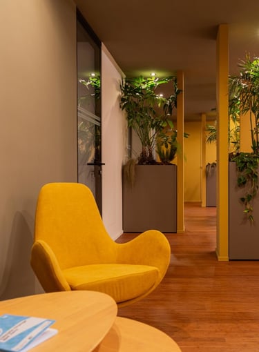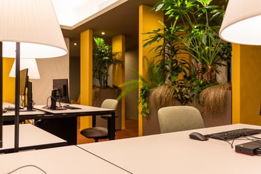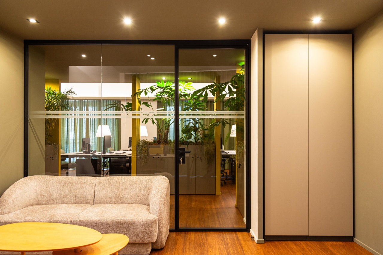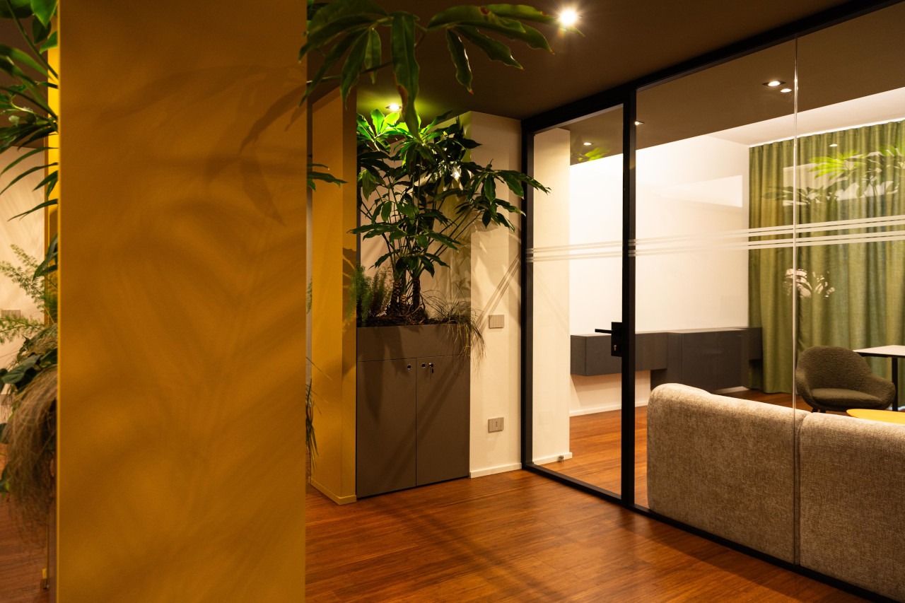The main goal of this project was to transform the traditional idea of an “office” or “bank” into an “office garden”: a workplace that evokes the calm and natural ease of a private garden. No longer a rigid, impersonal environment, but a welcoming setting wrapped in warm materials and a constant presence of greenery, giving the feeling of being in a domestic refuge. Timber finishes, soft furnishings, natural light, and generously distributed plants help create a reassuring, harmonious atmosphere, where employees and clients feel welcomed as if at home. Every material and colour choice was guided by the intention to foster comfort and trust, shaping a space that reduces the distance between people and institutions. The overall experience recalls an intimate, natural domestic garden one in which work becomes more fluid.