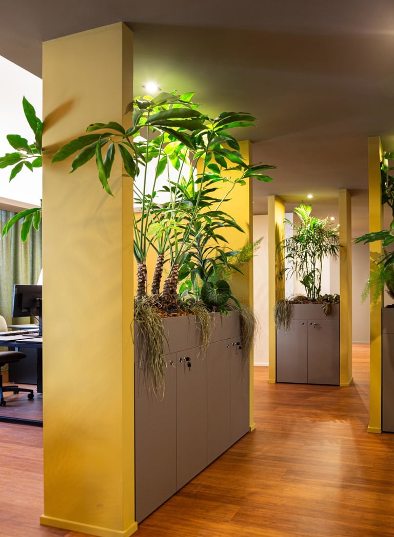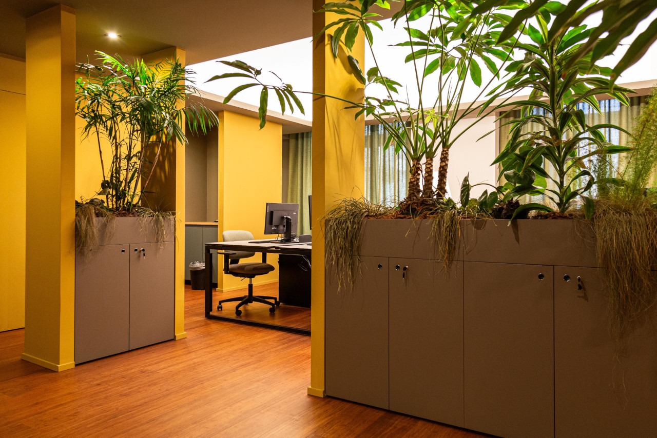 L’obiettivo principale di questo progetto è stato quello di trasformare l’idea tradizionale di “ufficio” o “banca” in un “office garden”: uno spazio di lavoro che evoca la quiete e la naturalezza di un giardino privato. Non più un ambiente rigido e impersonale, ma un luogo accogliente, avvolto da materiali caldi e da una presenza costante del verde, che restituisce la sensazione di trovarsi in un rifugio domestico. Finiture in legno, arredi morbidi, luce naturale e piante diffuse contribuiscono a creare un’atmosfera rassicurante e armoniosa, dove dipendenti e clienti si sentono accolti come a casa. Ogni scelta materica e cromatica è stata orientata a stimolare comfort e fiducia, generando un ambiente che riduce la distanza tra persone e istituzioni. L’insieme richiama l’esperienza di un giardino domestico, intimo e naturale, in cui il lavoro diventa più fluido.