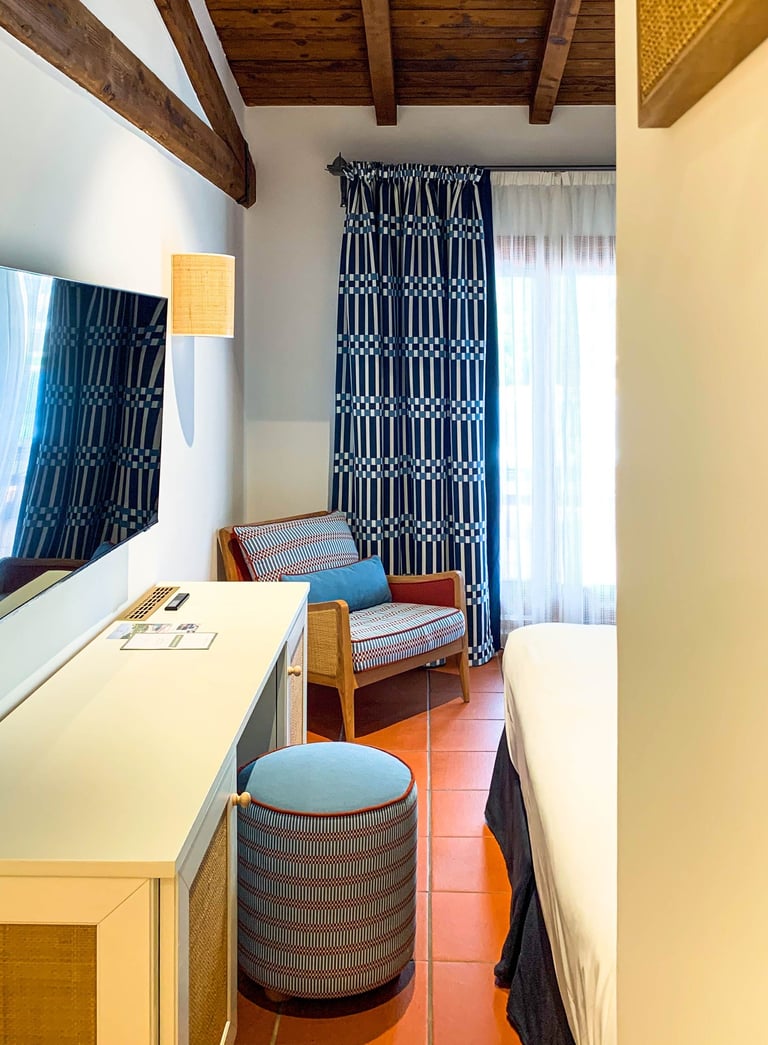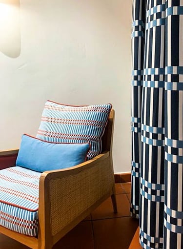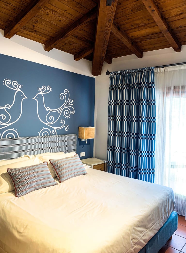In Porto Rotondo, identity comes from a single alphabet: Sardinian graphic tradition. The same signs move from walls to tiles to textiles, creating continuity and recognisable character without folklore.