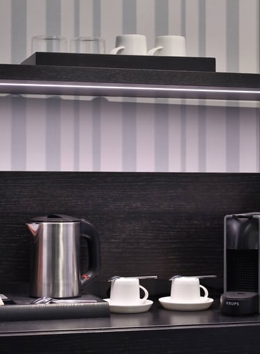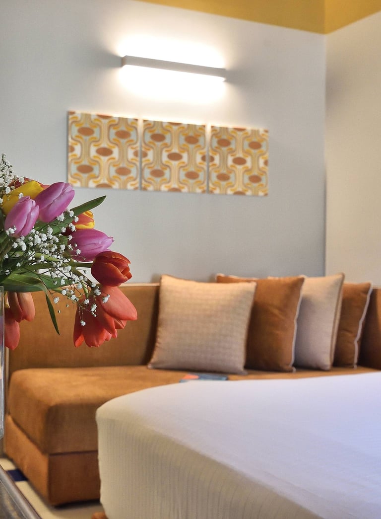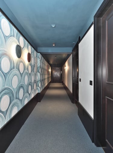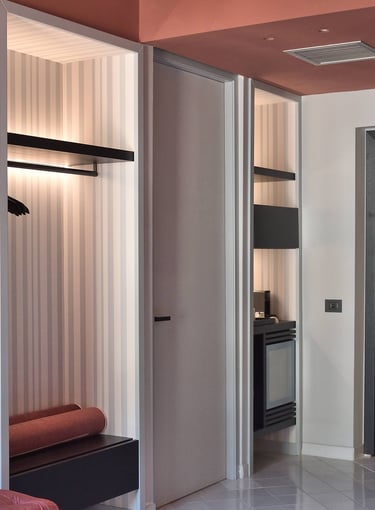 In Positano, light and colour become design material. These rooms translate the landscape into a restrained interior: bright, plaster like walls and sky-ceilings in three moods sea blue, sunlit ochre, terracotta shifting atmosphere while keeping a consistent grammar.