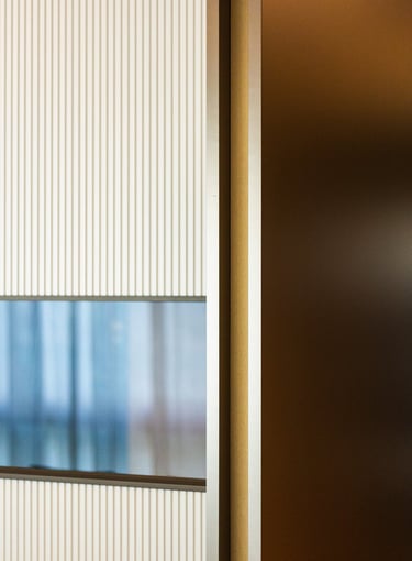 The open plan is structured by elements that stop short of full height: light thresholds that define functions without breaking the flow. This semi-division through half-height volumes organizes the different areas while keeping depth and spatial continuity fully legible. The same partitions also act as lighting devices, producing indirect, glare-free illumination: a glow rising from floor level, reflected by the ceiling’s domed surface, and diffused evenly, shaping an atmosphere that feels calm, precise, almost suspended.